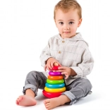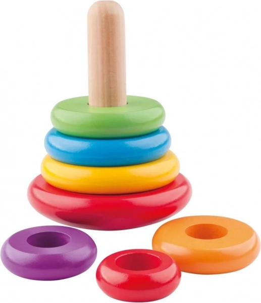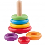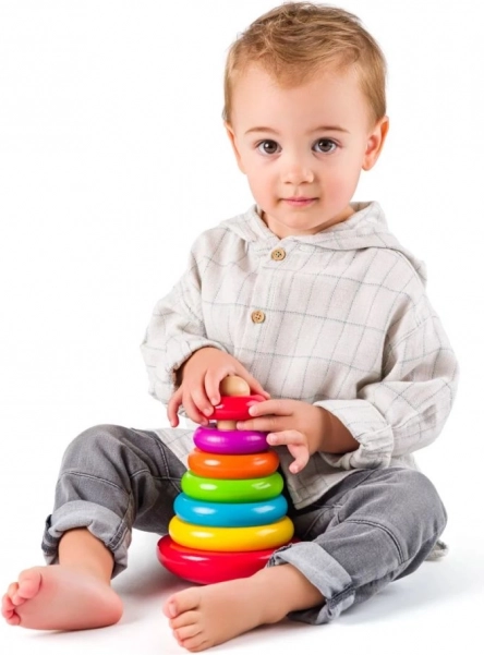 Ta igrača združuje dva odlična načina zabave – kot piramida in kot vrtavka. Otroci natikajo pisane lesene obročke na paličico od največjega do najmanjšega in hkrati razvijajo ustvarjalnost in fino motoriko. Poleg tega lahko igračo zavrtite kot vrtavko, kar doda še eno raven zabave.