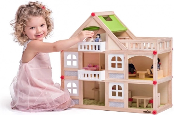Viga PolarB velik leseni hišica za punčke, 17 delov