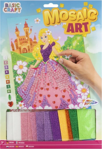Ustvarite svojo mozaično sliko z motivom rožnate princese znamke Grafix. Izdelek spodbuja ustvarjalnost in zavzetost pri urah ustvarjanja. Preprosto lepljenje penastih oblik in nalepk spremeni sliko v edinstveno umetniško delo.