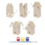 Odkrijte veselje do ustvarjanja z edinstvenim kompletom Naredi si svoj lesen hišice. Ta set prinaša ure zabave, ko si lahko otroci zgradijo in okrasijo svoj hišice. Komplet vsebuje: