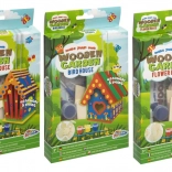 Komplet vsebuje vsa potrebna orodja – predrezan les, barve in čopič – kar omogoča takojšnje ustvarjanje brez potrebe po dodatnih pripomočkih.