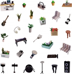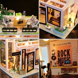 Ustvarite svoj svet glasbe v obliki podrobne miniaturne hišice – Glasbeni studio. Set vsebuje vse potrebno za sestavljanje, vključno z drobnim orodjem in dodatki. Zahvaljujoč LED osvetlitvi (napajanje 2× AA, niso priložene) izstopajo vsi detajli, vaš izdelek pa se spremeni v prijetno dekoracijo.