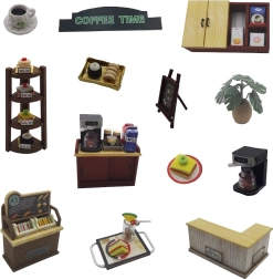 Od kavnega aparata in vitrine s pecivom do pladnjev, napitkov in dekoracij – vsaka podrobnost podpira verodostojnost vašega modela.