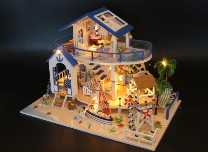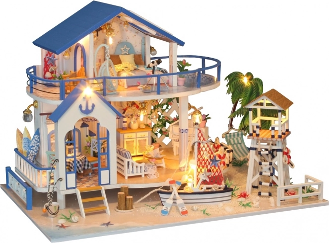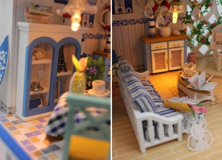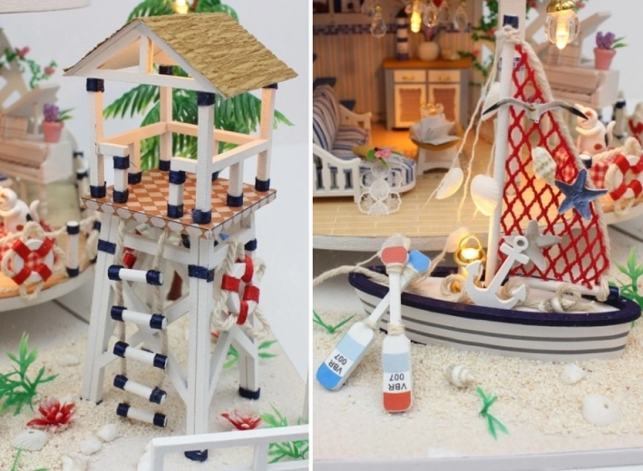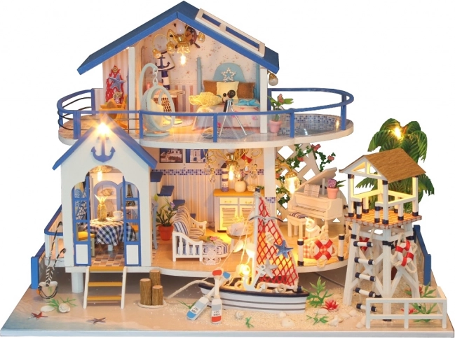 Ustvarite slikovito hišico v slogu obmorskega letovišča z modro-belo paleto, verando ter bogato izbiro pohištva in dekoracij. Natančno izdelani detajli, funkcionalne LED luči in prijetna atmosfera jo uvrščajo med izjemne kose za notranjo dekoracijo in odličen projekt za prosti čas.