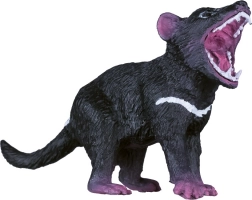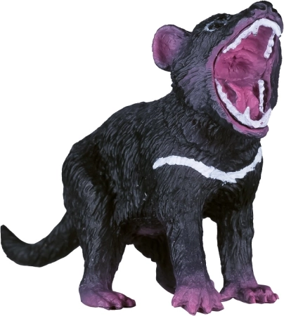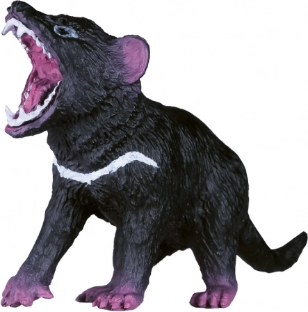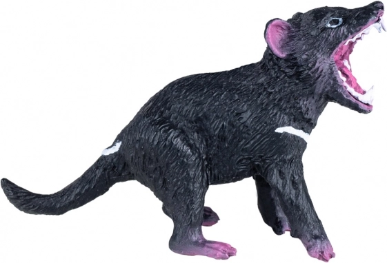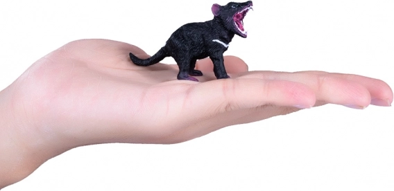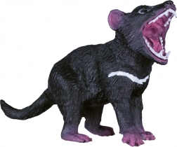 Ta podrobna figura prikazuje tasmanskega vraga v značilni drži z odprtim gobcem in izrazito teksturo kožuha. Zaradi ročnega barvanja izstopajo avtentične barve in drobni detajli, ki spodbujajo izobraževalno igro in spoznavanje narave.