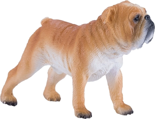 Ta podrobna figurica angleškega buldoga izstopa z realistnim videzom – od mogočne glave in kratkega gobca do značilnih gub in robustne postave. Zaradi skrbne ročne poslikave deluje zelo prepričljivo in bo priljubljen dodatek otroški zbirki ali vitrini odraslih zbirateljev.