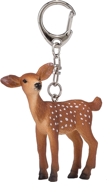 Obesek prikazuje malega mladiča srne z verodostojnimi detajli in naravno obarvanostjo.