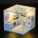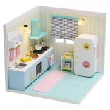 Ta miniaturna hišica Vesela kuhinjica prebuja vaš umetniški in graditeljski čut s svojimi očarljivimi detajli. Vsaka sestavljanka prispe v razstavljenem stanju in je dobavljena z LED osvetlitvijo, ki zahteva dve bateriji AAA (nista priloženi). Zahvaljujoč zaščiti iz pleksi stekla imate zagotovilo, da bo vaš izdelek varen.
