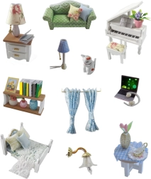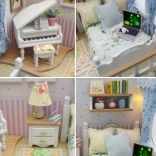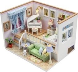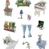 Ustvarite svoj miniaturni interier, poln realističnih podrobnosti – udobno zofo z blazinami, eleganten klavir, posteljo s tekstilno opremo, svetilke, poličke in nežne dekoracije. Vgrajena LED osvetlitev doda prizoru prijetno toplino in spremeni vaš izdelek v edinstveno dekoracijo za polico ali pisalno mizo.