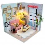 Sestavite si svoj košček prijetnega doma v obliki miniaturne dnevne sobe, ki bo po dokončanju polepšala polico ali pisalno mizo. Sestavljanka prispe razstavljena, a z natančnimi navodili po korakih boste zlahka obvladali lepljenje in drobne prilagoditve. Vgrajena LED osvetlitev prizoru doda pristno vzdušje – baterije so priložene.