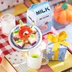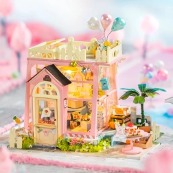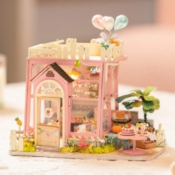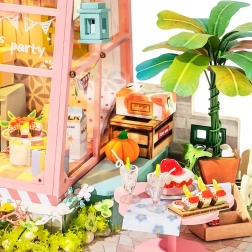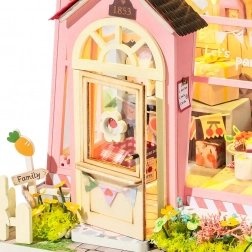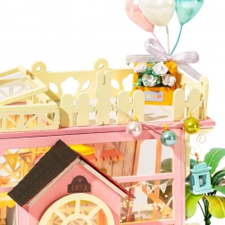 Ta podrobno zasnovan DIY komplet vam omogoča, da sestavite svojo miniaturno trgovinico v pastelnih barvah z nežnimi dodatki, baloni in cvetjem. Vgrajena LED osvetlitev zvečer ustvari prijetno vzdušje in model spremeni v očarljivo dekoracijo. Zahvaljujoč popolni opremi v paketu se lahko takoj lotite ustvarjanja.