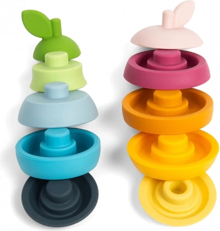 Zlaganje in razvrščanje delov razvijata prijem, koordinacijo oko–roka in zbranost. Idealna dejavnost za otroke od 1. leta.