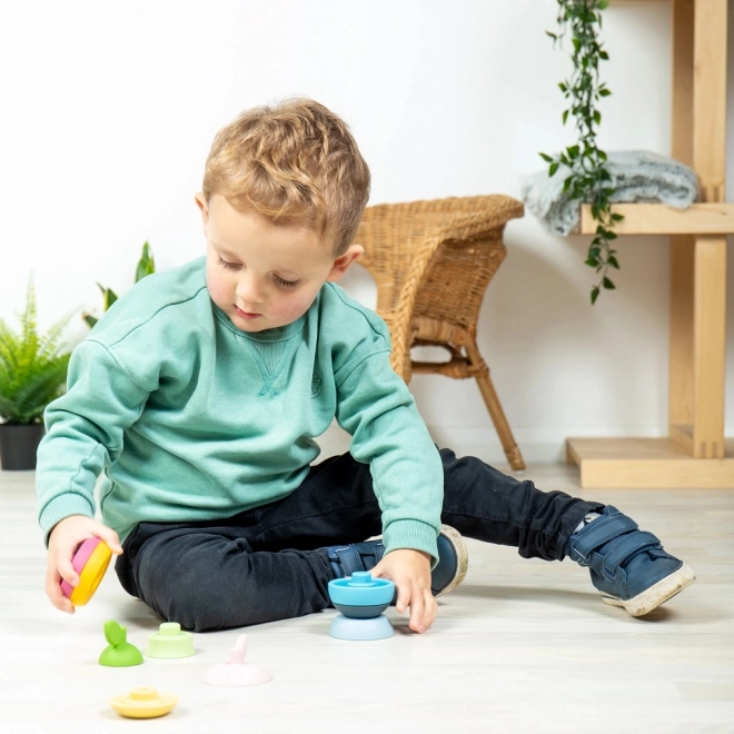 Spoznajte ustvarjalni komplet Bigjigs Toys, ki prve poskuse zlaganja spremeni v zabavno učenje. Jabolko in hruška sta sestavljena iz petih gladkih, barvitih delov iz 100 % silikona. Otroci vadijo prijem, natančnost in potrpežljivost, hkrati pa varno grizejo mehek material pri izraščanju zob.