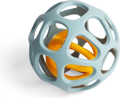 Odprta mrežasta zasnova omogoča otrokom, da žogico zlahka primejo, držijo, stiskajo in kotalijo – odlično za krepitev prijema in koordinacije.