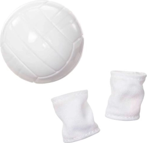 Del seta sta bel odbojkarski žoga in dve ujemajoči se zapestnici, ki dopolnjujeta celoten športni videz punčke.