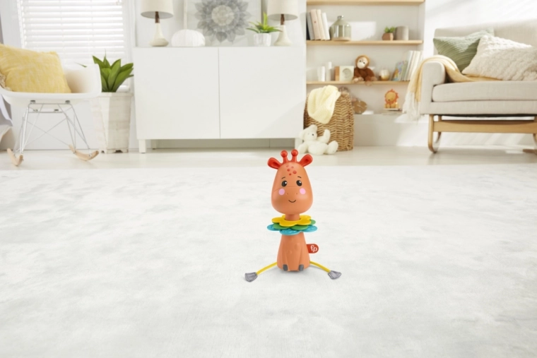 Interaktivna žirafa Fisher‑Price je idealna sopotnica za prvo odkrivanje sveta. Zahvaljujoč kontrastnim barvam, gladkim in teksturiranim površinam ter klapljajočim obročkom naravno spodbuja čute ter motivira otroke k prijemanju, vrtenju in stresanju. Kompaktna zasnova se zlahka drži v majhnih rokicah in je primerna za doma in na poti.