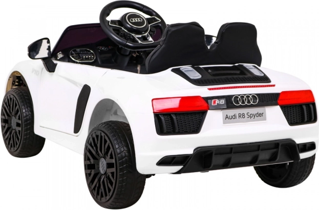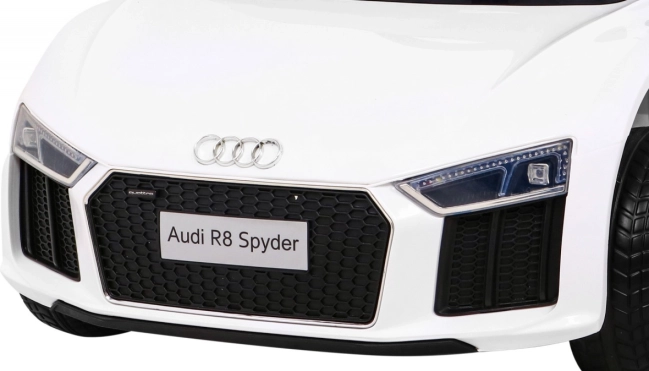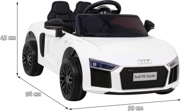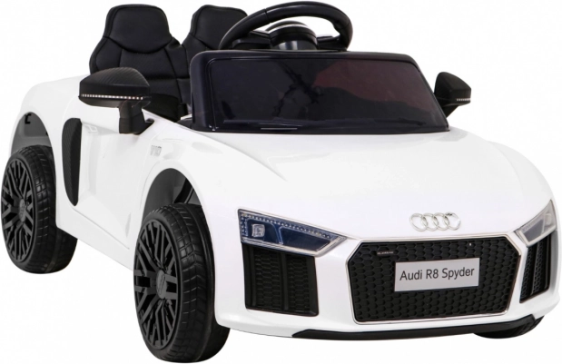 Športna vožnja za male voznike v ikoničnem slogu AUDI R8 Spyder. Avtomobilček poganjata dva motorja po 35 W, napajata pa ga dve bateriji 6 V/4,5 Ah, zato zlahka obvlada gladko vožnjo po trdnih podlagah in vrtnih poteh. Mehek zagon (Soft Start) varuje otroka pred sunki, vzmetenje sprednje in zadnje preme pa poveča udobje.