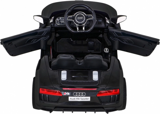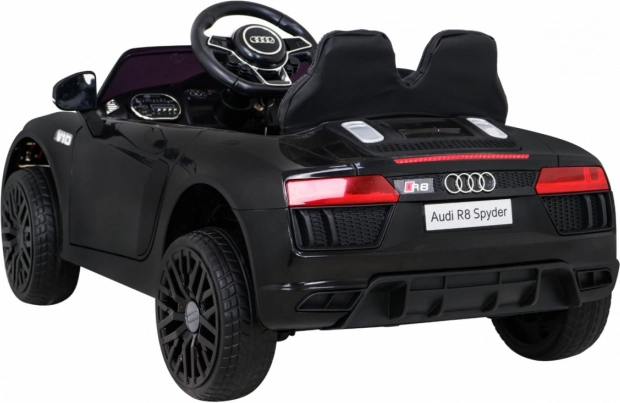 Majhen voznik, veliko veselja. Električni avtomobilček AUDI R8 Spyder v elegantni črni barvi ponuja privlačen videz pravega športnega vozila, enostavno upravljanje in varen pogon. Zahvaljujoč dvema motorjema 35 W in postopnemu zagonu je vožnja udobna in stabilna, medtem ko sprednje in zadnje vzmetenje duši neravnine.