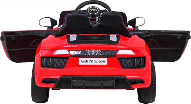 Električni avtoček Audi R8 Spyder prinaša ikoničen videz supersporta v otroški svet. Dva zmogljiva motorja 35 W zagotavljata gladko vožnjo naprej in nazaj, medtem ko mehak zagon ščiti otroke pred sunki pri speljevanju. Mehka EVA kolesa in vzmetenje spredaj ter zadaj povečujejo udobje na pločniku in na vrtu.