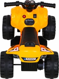 Lahek in stabilen otroški električni štirikolesnik na 6V baterijo z motorjem 25W ponuja enostavno upravljanje, vožnjo naprej in nazaj ter trpežna plastična kolesa. Idealen za prve vožnje malih voznikov na vrtu in doma. Kompaktne dimenzije, varna hitrost in preprosto upravljanje plina na ročaju zagotavljajo zabavo in udobje.