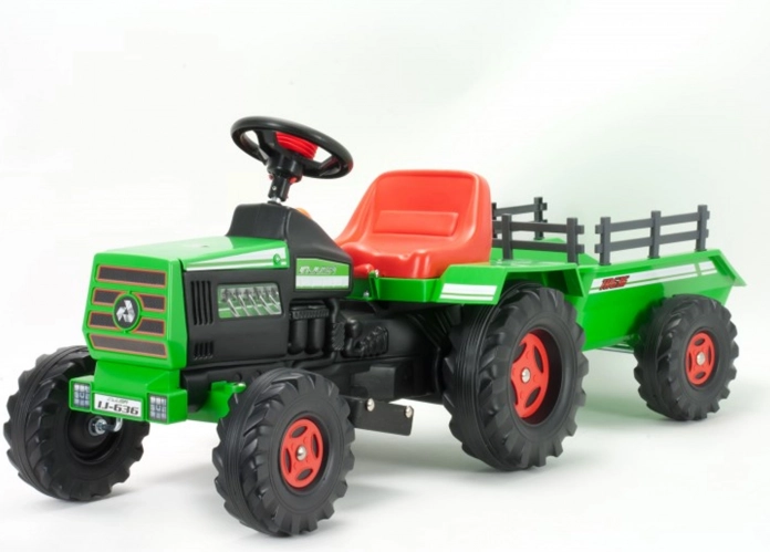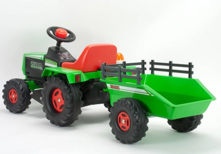 Model navduši z odstranljivo prikolico za prevažanje igrač, sireno s svetlobo (na 3× AAA, niso priložene) in električno zavoro, ki vozilo samodejno ustavi ob sprostitvi pedala. Plastična kolesa z gumijastim protizdrsnim trakom izboljšajo oprijem na različnih podlagah in dušijo vibracije.
