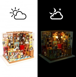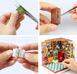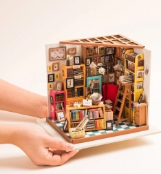 Odkrijte čar miniaturne knjižnice, ki vas s svojimi detajli povede v svet zgodb. Komplet ROBOTIME je odlična izbira za vse, ki uživajo v kreativnem počitku in želijo svoj dom okrasiti s stilno dekoracijo. LED osvetlitev pričara toplo in prijetno vzdušje, zaradi katerega model zaživi tudi po temi.