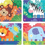 Del kompleta so štiri posamezne sestavljanke z motivi živali – opica, zebra, lev in slon. Poleg tega, da otroci sestavljajo celotne slike, lahko tudi odstranijo in sestavljajo posamezne živali samostojno. Dimenzije dokončane sestavljanke so približno 24 x 16 cm.