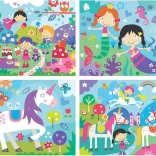 EDUCA s svojim novim kompletom čarobnih prijateljev 4v1 prinaša otrokom priložnost za izpopolnjevanje veščin pri sestavljanju. Vsaka od štirih sestavljank meri 28 x 20 cm in ima različno število koščkov, kar zagotavlja, da se z vsako naslednjo sestavljanko stopnjuje zahtevnost: