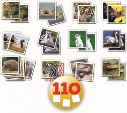 Družinska zabava s spominom, ki vsebuje 110 kartic s fotografijami živali iz narave. Idealno za trening spomina otrok in odraslih.