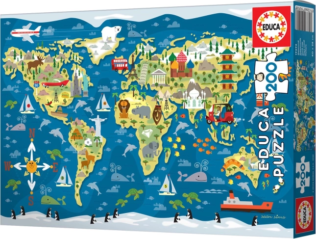 Odkrijte svet s to privlačno sestavljanko zemljevida sveta znamke EDUCA. Z 200 kosi je idealna za mlade raziskovalce.