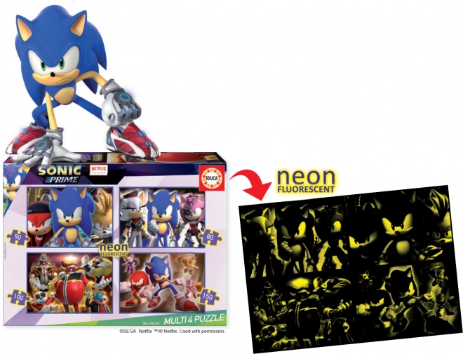 EDUCA Svetleči puzzle Sonic Prime 4v1 (50, 80, 100, 150 koščkov)