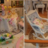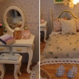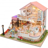 Dvonadstropna vila s spalnico, dnevno sobo in kuhinjo v nežnih barvah navduši z bogato opremo in realističnimi dodatki.