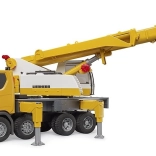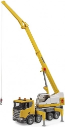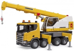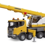 Ta podrobno izdelan model mobilnega žerjava v merilu 1:16 združuje kabino SCANIA in žerjav LIEBHERR za maksimalno pristno izkušnjo. Žerjavna roka se gladko izvleče in fiksira na višino, pri polnem izvleku doseže impresivnih 130 cm. Stabilnost zagotavljajo posamezno nastavljive in vrtljive izvlečne opore ter praktična protiutež, ki jo je možno napolniti s peskom ali prodom.