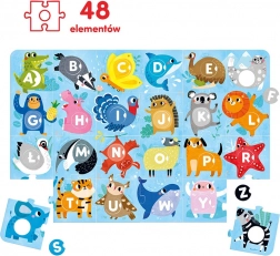 Torba je ogromna, barvno bajna in lepo ilustrirana, kar navdihuje spoznavanje črk in omogoča številne raznolike razvojne dejavnosti. Sestavljanje puzzlov je le ena izmed njih. Priloženi vodnik je poln idej za izobraževalne igre, ki so prilagojene starosti in sposobnostim otroka. Puzzle so odlične tako za domače kot vrtičkarsko okolje.