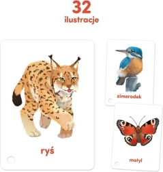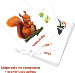 Izobraževalni komplet slikovnih kartic »Slikovne kartice na vrvici: Živali« je namenjen otrokom od 2. leta starosti. Vsebuje 16 dvostranskih kartic z ilustracijami živali in praktično vrvico za enostavno listanje in rokovanje.