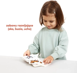 Slikovne kartice na vrvici »Živali« pomagajo otrokom razvijati besedni zaklad, fino motoriko in koordinacijo roka–oko. Komplet vsebuje predloge za igre in dejavnosti, ki podpirajo izboljševanje spomina in pozornosti. Otroci lahko posnemajo živalske zvoke in gibe ali iščejo razlike in podobnosti med njimi. Vzdržljiv karton zagotavlja dolgo življenjsko dobo kartic.