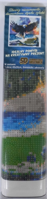 Diamantno slikanje je preprosta in pomirjujoča dejavnost, ki prinaša veselje do ustvarjanja in čudovit končni rezultat. S pomočjo aplikatornega peresa nameščate barvne kamenčke na predtiskano platno z lepilno plastjo in postopoma sestavljate bleščeč motiv orla. Končano sliko lahko uokvirite in razstavite (okvir ni priložen).