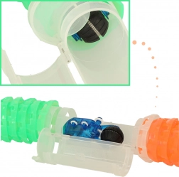 Kreativno spajanje delov omogoča gradnjo proge v dveh načinih: prosto za prilagodljive zavoje ali trdno za stabilne vertikalne konstrukcije. Avtomobilček zahvaljujoč vgrajeni lučki poskrbi za odličen učinek v mraku in zagotavlja osupljivo predstavo.