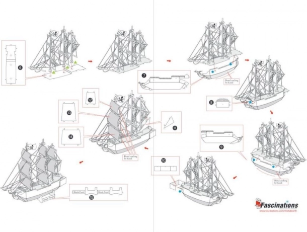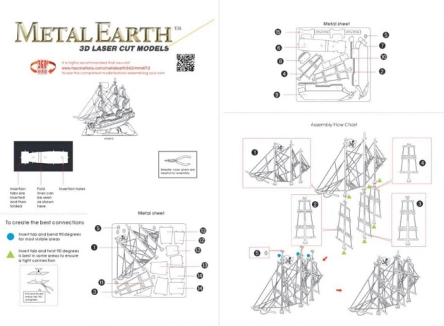 Komplet ne potrebuje lepila – deli se spajajo s pomočjo zatičev in upognjenih jezičkov. Za udobnejše delo priporočamo majhne klešče in rezalne škarje (niso priložene). Zahvaljujoč natančnemu laserskemu graviranju izstopajo vse konture in detajli, ki iz tega modela naredijo pravi zbirateljski kos.