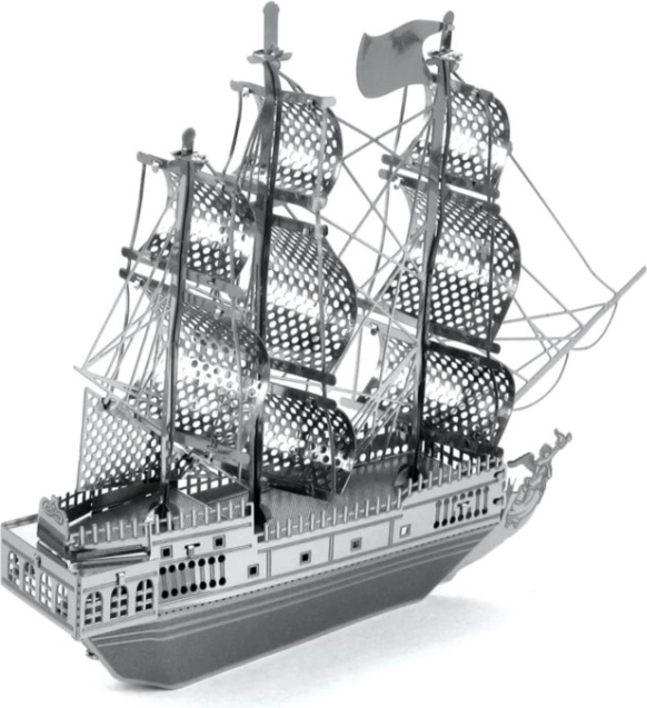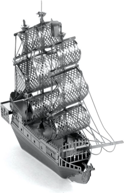 Elegantna kovinska replika legendarne ladje Black Pearl bo razveselila ljubitelje modelov, filmskih ikon in izvirnih dekoracij. Iz 2 jeklenih lističev velikosti 11 × 11 cm boste sestavili podrobno ladjo z nežno perforacijo jader in realističnimi elementi trupa. Sestavljanje zahteva potrpežljivost, a nagrada je stilska dekoracija za stanovanje, pisarno ali delovni kotiček.
