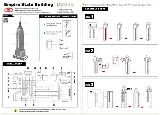 METAL EARTH 3D sestavljanka Empire State Building je idealna za tiste, ki uživajo v ogledu zapletenega modela polnega podrobnosti. Ta modelni komplet iz premium linije ICONX navdušuje s svojo subtilno natančnostjo in visoko ravnijo avtentične izvedbe. Izdelan je iz jeklenih listov in zahteva spretne roke ter potrpljenje.