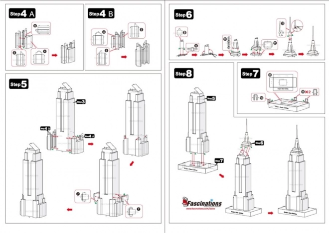 Komplet vključuje podrobna navodila za montažo s skicami, ki poenostavljajo postopek sestavljanja replike te slavne stavbe.