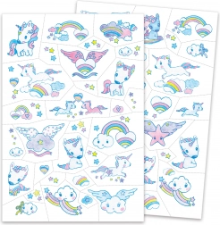 Začasne tetovaže DJECO z motivi samorogov so idealna izbira za otroške zabave, pust in vsakodnevno zabavo. Otroci si lahko okrasijo roke, obraz in noge z veselimi in nežnimi sličicami, ki so bile dermatološko testirane za varno uporabo.