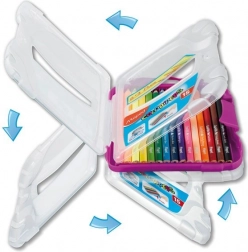 Pametni plastični etui z vzvodnim mehanizmom olajša organizacijo in hiter izbor barve. Set je idealen za šolo, krožke in dom – vse potrebno imate vedno pri roki.