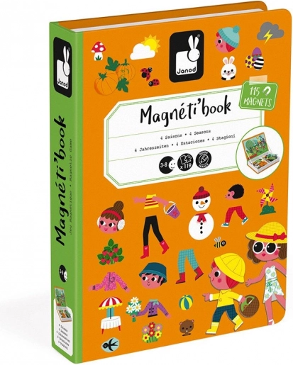 Magnetna knjiga Janod Magnetibook – letni časi razvija domišljijo, logično razmišljanje in fino motoriko. Otroci po karticah sestavljajo prizore posameznih letnih časov ter izbirajo ustrezna oblačila in dodatke. Zaradi kompaktne oblike v obliki knjige je idealna za potovanja, v avto in na obiske.