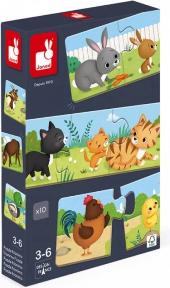 Privoščite svojim otrokom zabavne in poučne trenutke z otroškimi puzzli Kmetija blagovne znamke Janod. Ti puzzli vsebujejo 30 kosov, ki predstavljajo zabavno kmečko sceno. Z ilustracijami otroke spodbujajo k prepoznavanju staršev in mladičev, kar bogati njihov besedni zaklad in znanje o živalih.