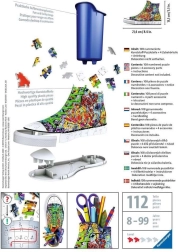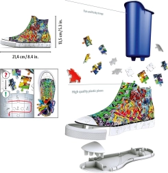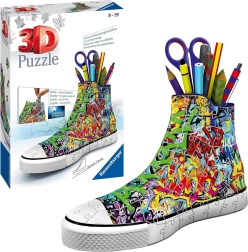 Odkrijte edinstveno povezavo zabave in funkcionalnosti. 3D puzzle superga z graffiti dizajnom je sestavljena iz posebej oblikovanih in prilagodljivih plastičnih koščkov, ki se natančno zaskočijo in ustvarijo stabilno dekoracijo brez lepila. Po sestavljanju dobite izviren organizator za svinčnike, barvice ali škarje, ki vaši mizi doda ustvarjalen pridih.
