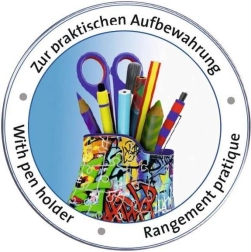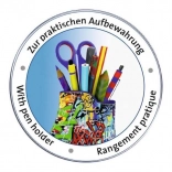 Končan model deluje kot praktičen lonček za pisala za svinčnike, barvice, škarje ali flomastre ter hkrati kot izrazita dekoracija pisalne mize.