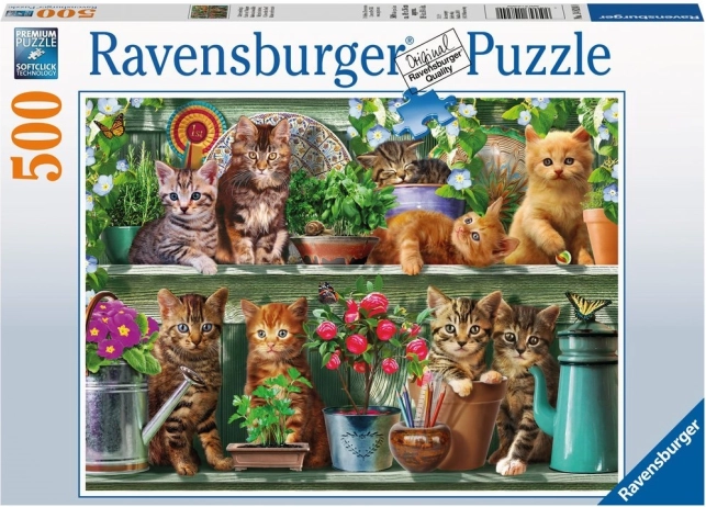 Uživajte v sestavljanju sestavljanke z motivom mačk na poličkah med rožami. Zahvaljujoč 500 kosom je ta sestavljanka izziv za vse ljubitelje sestavljank, ki si želijo odpočiti in se posvetiti priljubljenemu hobiju.