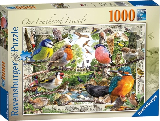 Uživajte v urah sprostitve s sestavljanko RAVENSBURGER »Naši pernati prijatelji«. Zahvaljujoč vrhunski kakovosti tiska in natančnemu izseku koščki popolno sodijo skupaj, kar prinaša prijetno izkušnjo sestavljanja ter čudovito končno podobo, polno barv in detajlov.